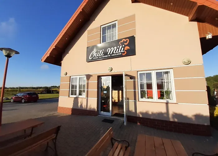 Puedes llegar al centro de Ustronie Morskie en 15, y desde allí podrás visitar lugares de interés natural, como la Torre Mirador Sky-Park, que se encuentra a 3 km. El Zajazd Chili Mili Ustronie Morskie ofrece un fácil acceso al Helios, a unos 10 minutos en coche. Este hotel está a una distancia de 2 km de la Iglesia de la Santa Cruz. El aeropuerto más cercano es Szczecin-Goleniów "Solidarność", ubicado a 90 kilómetros de este alojamiento.